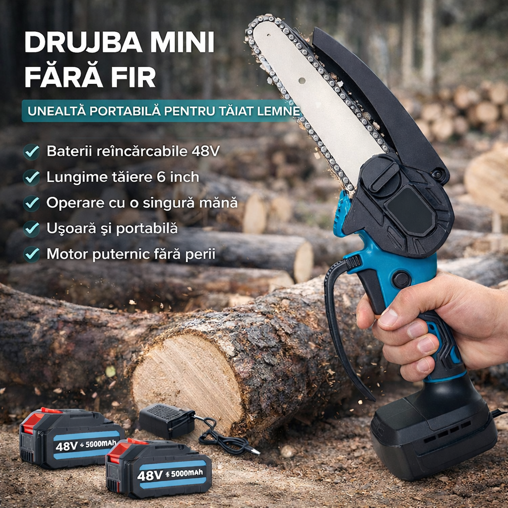 Mini drujba electrică cu lanț Rovo RV-MF este ideală pentru proiecte de grădinărit, gospodărie sau bricolaj, combinând putere, portabilitate și ușurință în utilizare .