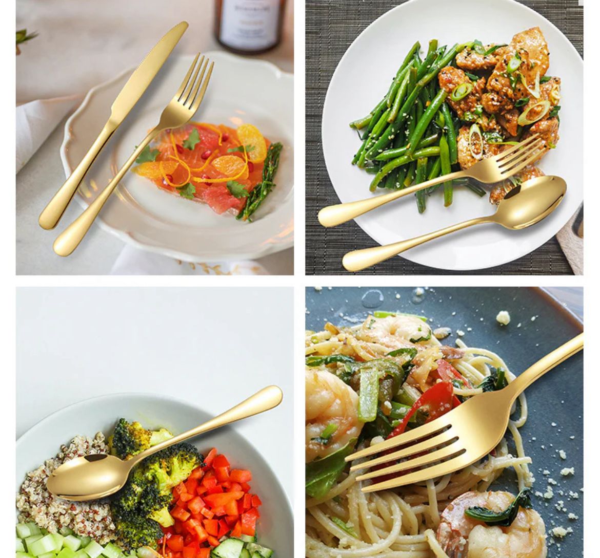 - Fabricate din inox de înaltă calitate, tacâmurile oferă durabilitate și rezistență în timp, fără a-și pierde strălucirea.